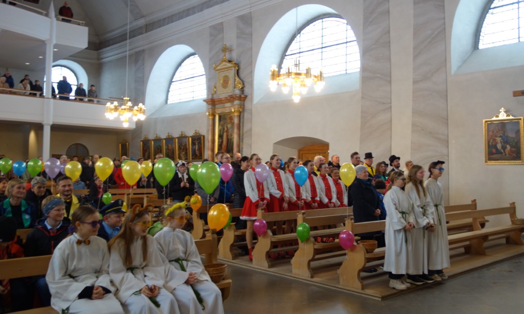 Gott loben, preisen und danken mit ganzem Herzen und das mitten im Hochfasching, dazu waren wir eingeladen. Das Prinzenpaar Theresa I. und Prinz Stefan II. mit ihrem Gefolge und der Garde, Kindermäschgerle und die Pfarrfamilie folgten der Einladung gemeinsam Gottesdienst zu feiern.