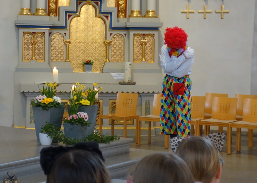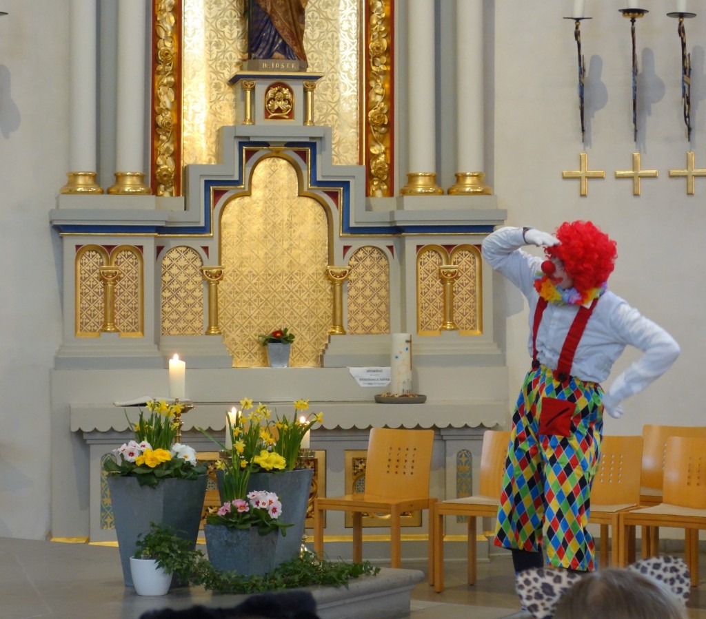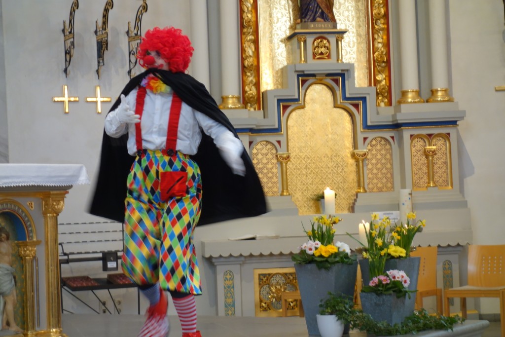 Gott freut sich, wenn wir unser Beten mit unseren Talenten zum Ausdruck bringen. Gott nimmt das Gebet so an, wie wir es vor ihn bringen. Tanzend betete der Clown für und mit uns. Danke Karin für deine ausdrucksstarke Performance.