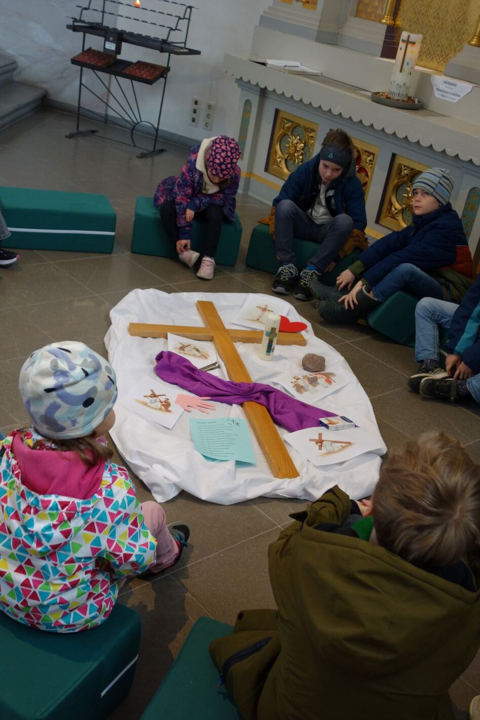 Am Karfreitag versammelten sich einige Kinder mit ihren Familien, um gemeinsam den Kreuzweg Jesu zu erleben. Nicht die Trauer allein steht im Vordergrund, sondern das Gemeinschaftserlebnis und das achtsame Gedenken.
